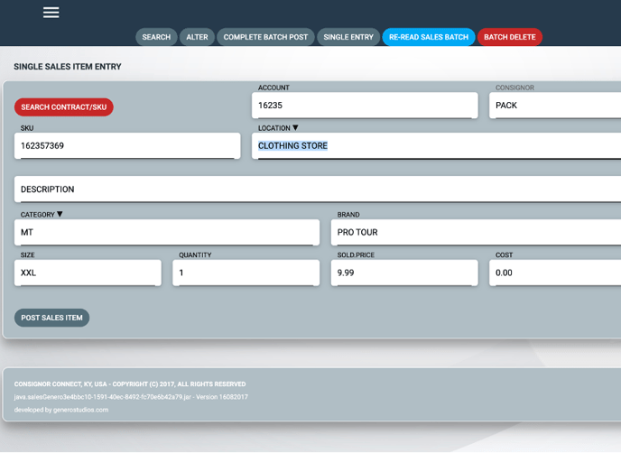 6. Be sure to then click from the Sold.Price field to the Cost field as the cost will become the payout to the consignor, so be sure it populates before clicking the "Post Sales Item" button.
